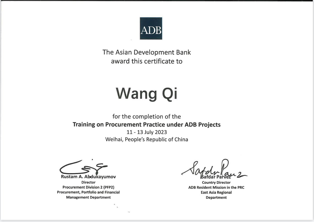 2023年8月,由亞洲開發(fā)銀行(以下簡稱“亞行”)主辦,亞行駐中國代表處承辦的采購實踐培訓、項目財務管理培訓在山東順利舉辦。甘肅文旅集團國際金融組織貸款項目管理辦公室三名同志作為亞行貸款甘肅環(huán)境可持續(xù)鄉(xiāng)村振興與發(fā)展項目代表參加了此次培訓。